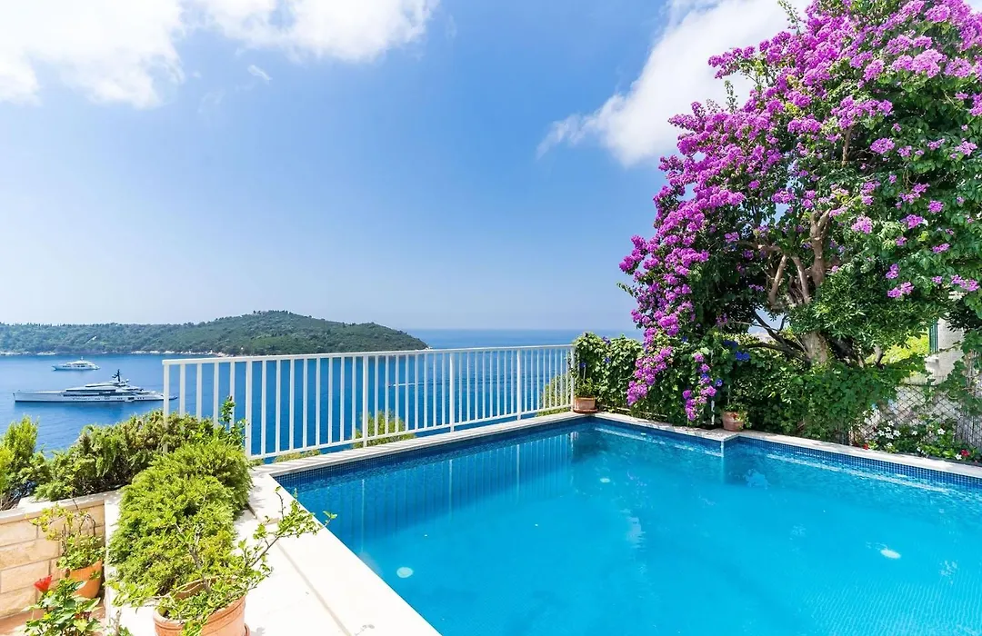 Situada a 2 km del Monasterio Dominicano, la Villa Adrian - Six Bedroom Villa With Swimming Pool And Sea View Dubrovnik invita a los huéspedes a relajarse en una terraza.